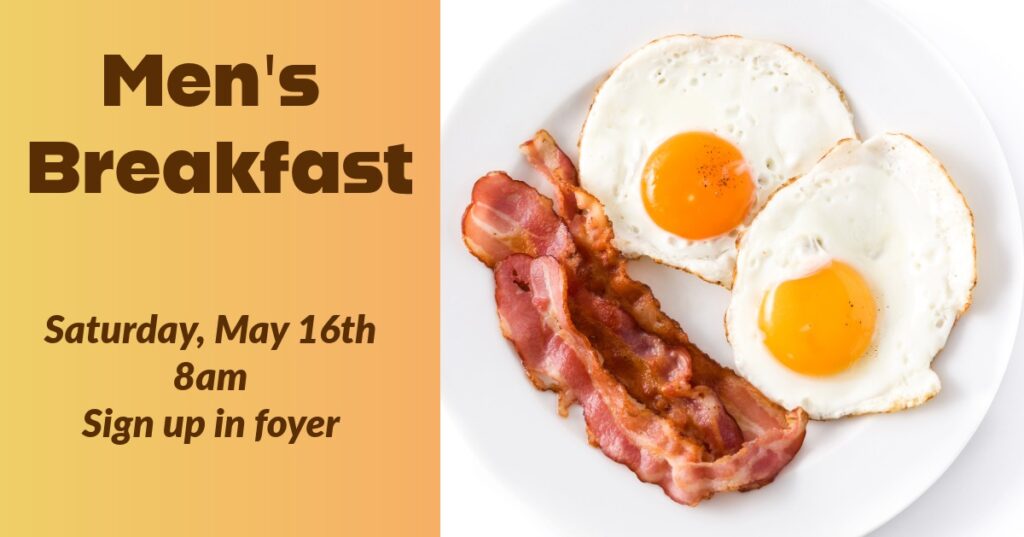 Saturday, May 16th at 8am. Men, come enjoy a delicious breakfast!