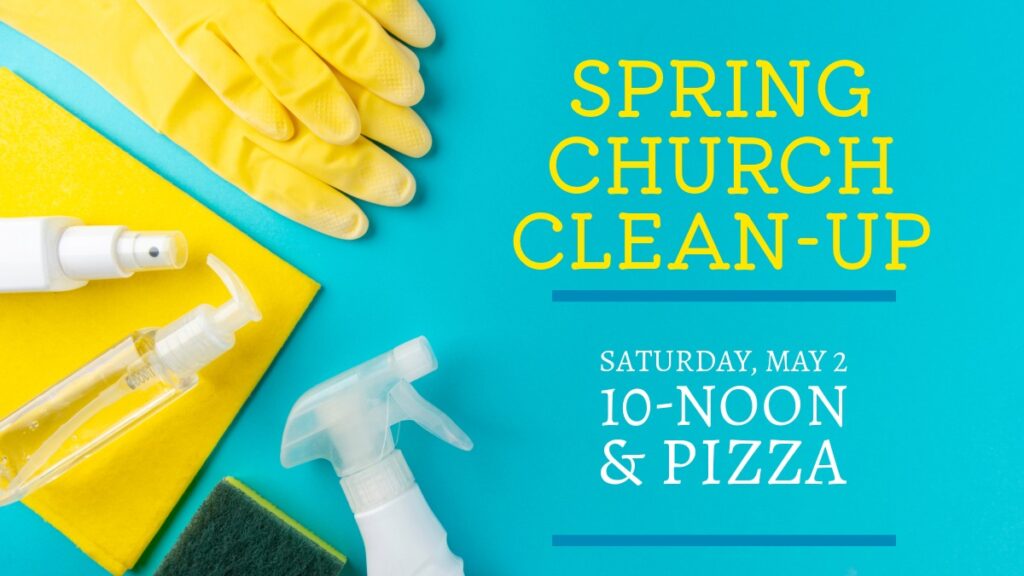 Saturday, May 2nd from 10am to noon. Come lend a helping hand at church! Pizza provided after.