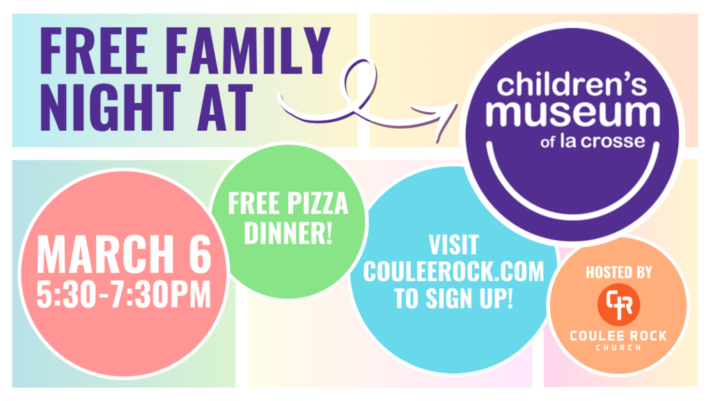 Save the date for Friday, March 6th from 5:30-7:30pm. This event is FREE and our goal is to bless families with an evening of fun & togetherness. Invite cards are available under the cross! Please register online.