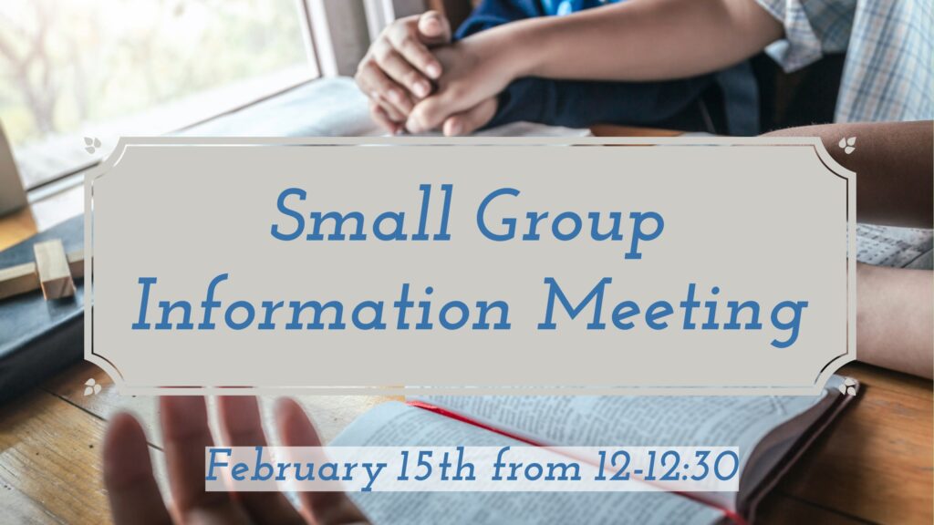 If you are interested in joining or leading a small group, please attend the small group informational meeting on February 15th at 12pm.
