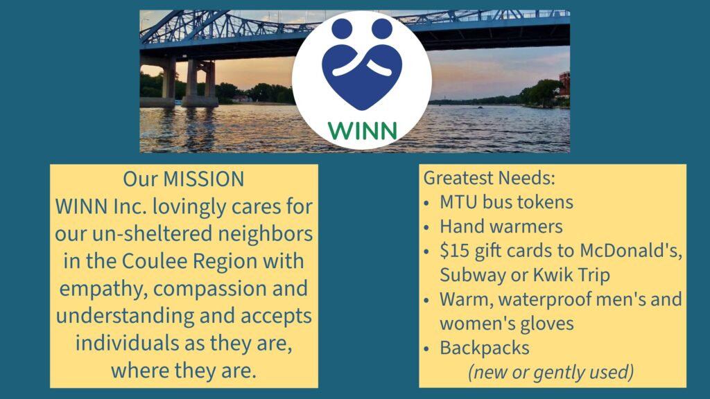 WINN, inc. lovingly cares for our un-sheltered and marginalized neighbors wherever they may be and accepts individuals as they are without judgement.